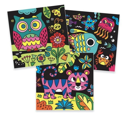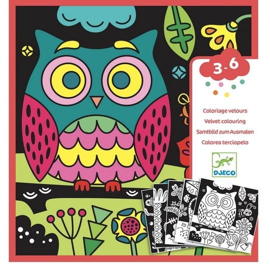 Welurowa kolorowanka z czarnym tłem Djeco pomaga dzieciom w kolorowaniu bez wyjeżdżania za linię. Gdy pomaluje się obok, aksamit wchłania kolor. Kontrastowe wypełnienie kartki ułatwia malowanie, obrazki stają się bardzo żywe i wyraźne. Aksamitne tło kolorowanki jest bardzo miłe w dotyku, a powstałe prace udekorują pokoik lub staną się osobistym prezentem dla najbliższych.
