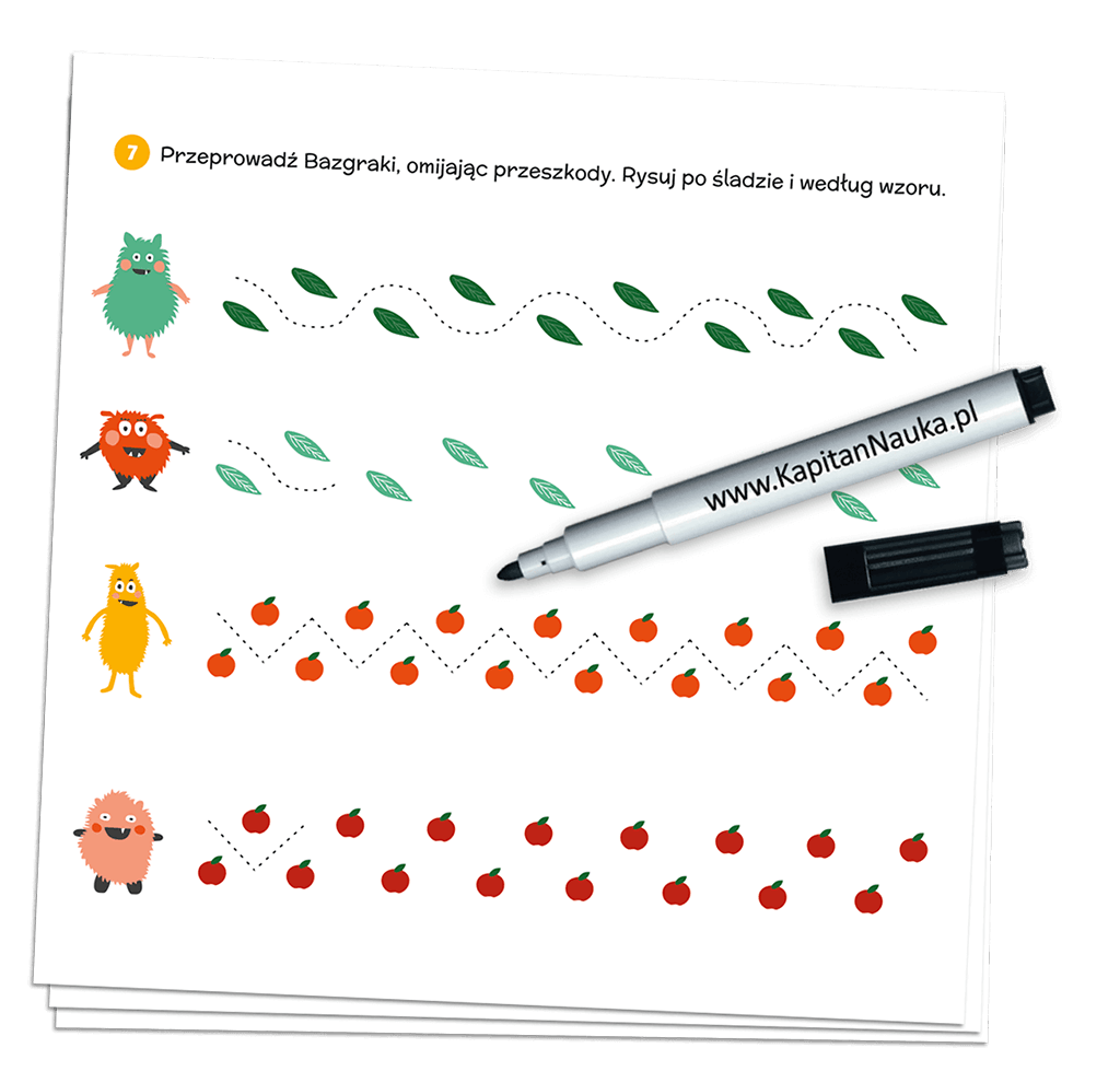 Zeszyt z zadaniami Bazgraki w kosmosie wraz ze ścieralnym markerem to dobry zestaw dla dzieci w wieku 3-6 lat.