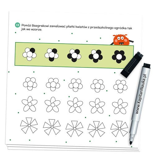 Zeszyt z zadaniami Bazgraki w przedszkolu wraz ze ścieralnym markerem to dobry zestaw dla dzieci w wieku 3-6 lat.