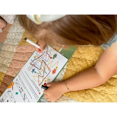 Notes ze śliskimi stronami umożliwia wielokrotne rozwiązywanie zadań oraz utrwalanie zdobytej wiedzy i umiejętności prowadzenia pisaka. Idealna książeczka z zadaniami dla przedszkolaka.