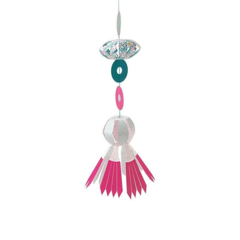 Kreatywny zestaw do wykonania własnoręcznych dekoracji. Składane z kolorowych papierów Girlandy to piękna odmiana origami, z wieloma elementami, które należy złożyć aby utworzyć wiszące zawieszki. W zestawie znajdują się kolorowe, papierowe elementy do złożenia, nić do zawieszenia elementów, taśma do przyklejenia oraz książeczka instruktażowa obrazkowa krok po kroku.