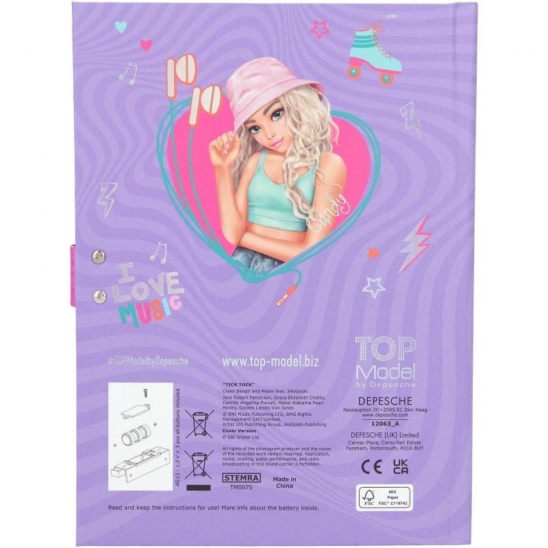 Fioletowy pamiętnik z z kodem dźwiękowym TopModel TINY DANCER otwierany na hasło. Klawisze przy wduszaniu wydają dźwięk. Po wpisaniu prawidłowego kodu pamiętnik gra fragment piosenki "Top-Hit Tick Tock", po wpisanie błędnego kodu informuje głosowo o pomyłce.