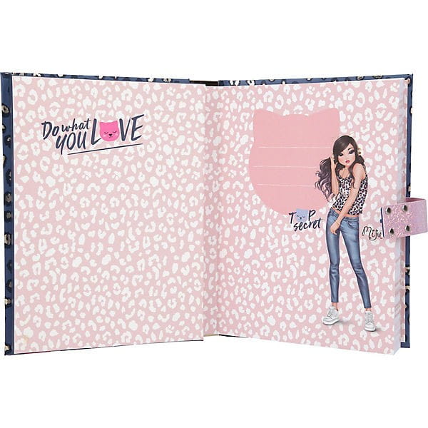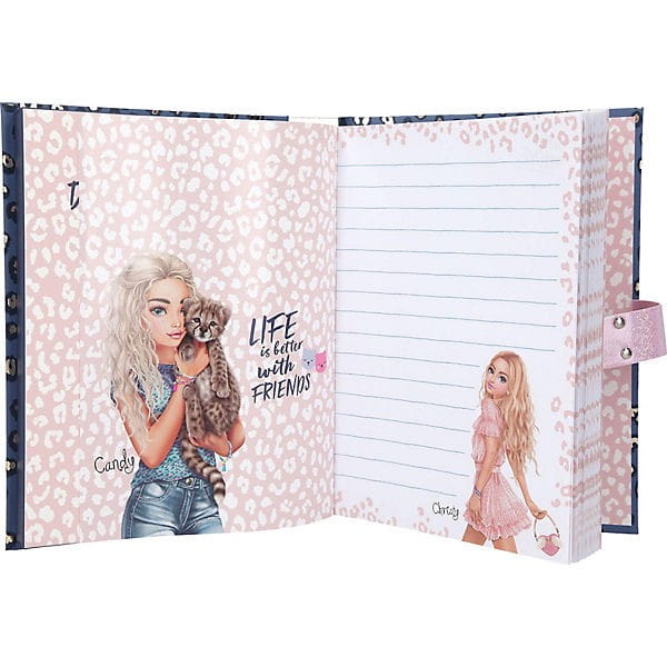 Granatowy pamiętnik TopModel zamykany na kod. Klawisze przy wduszaniu wydają dźwięk. Po wpisaniu prawidłowego kodu pamiętnik śpiewa fragment piosenki "Tick Tock", po wpisanie błędnego kodu informuje głosowo o pomyłce.