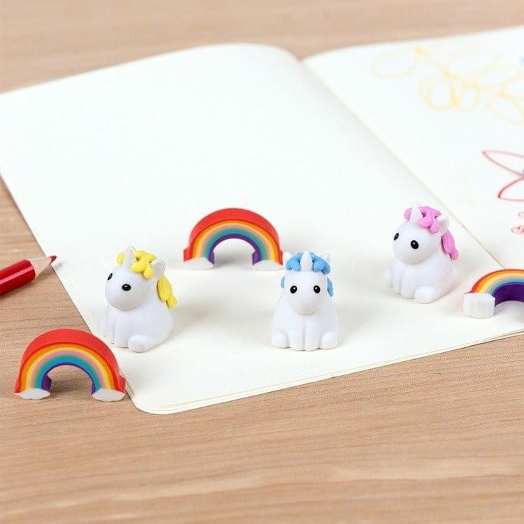 - Zestaw zawiera 6 gumek do zmazywania z motywem jednorożców i tęczy