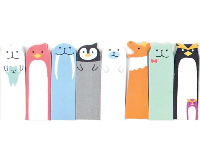Kolorowe karteczki samoprzylepne w pingwiny, foczki i inne morskie zwierzaki Ooly to uroczy zestaw składający się z 8 wzorów. Od wyboru do koloru zakładki do książek, zeszytów, notatek, kalendarza i wszelkich małych zapisków. Pomocne nie tylko dla zapominalskich, przydadzą się w szkole, na uczelni, w pracy i domu do zapisywania wiadomości i ważnych informacji. Co więcej, różne wzory samoprzylepnych mini zakładek pozwolą jeszcze szybciej odszukać konkretne informacje, cytat lub wydarzenie oraz zapamiętać ważne wydarzenie. Kolory i zabawne wzory dodadzą także nieco radości w codziennych obowiązkach.