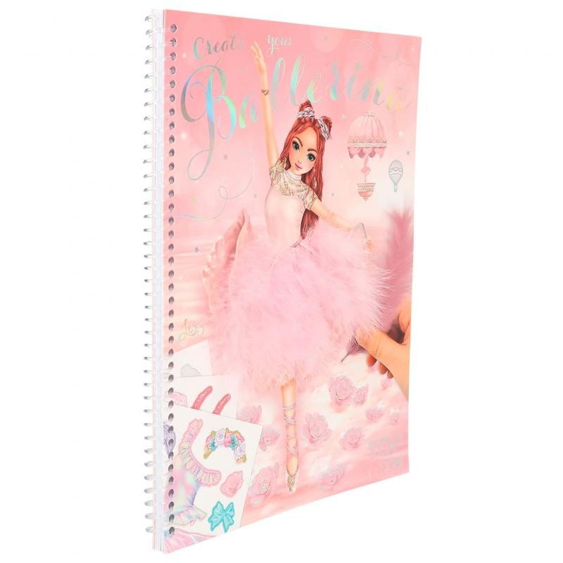 Przepiękny zeszyt kreatywny Top Model przedstawiający baletnice do dekorowania załączonymi naklejkami i piórkami, oraz kredkami czy pisakami. Połyskujące naklejki zawierają wszystkie elementy stroju baleriny, nawet korony. Na okładce kolorowanki znajdują się zwiewne piórka. Aż 3 arkusze naklejek z elementami stroju baletnicy pozwolą stworzyć taneczne obrazki oraz znakomicie zaangażować dzieci do kreatywnej zabawy w domu, czy podróży. Każda strona zawiera szkic tancerki, który można dowolnie ozdabiać, kolorować lub malować.