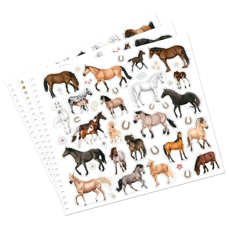 Szkicownik z naklejkami Miss Melody Horse przepięknie wydany. Zabawa polega na ozdabianiu szkiców koni kredkami, pisakami, czy załączonymi naklejkami. Spiralny notes zawiera też arkusze naklejek z końmi różnych raz, które wyglądają bardzo realistycznie. Naklejki z końmi posiadają brokatowe dekoracje. Pośród stron do malowania znajdziemy konie fryzyjskie, hanowerskie, zimnokrwiste, konie w galopie, konie na zawodach jeździeckich, kuce, konie w zaprzęgu, podczas ujeżdżenia, konie arabskie.