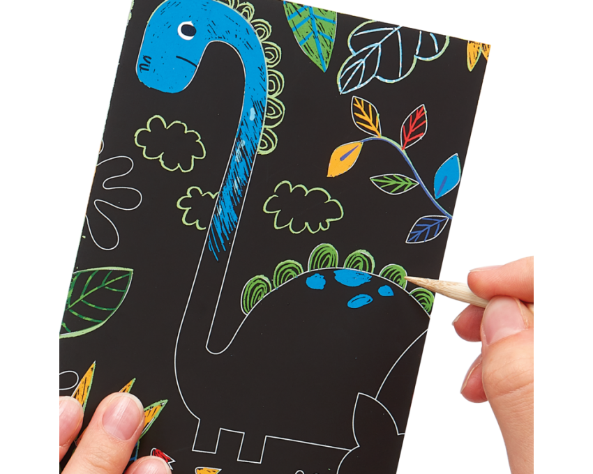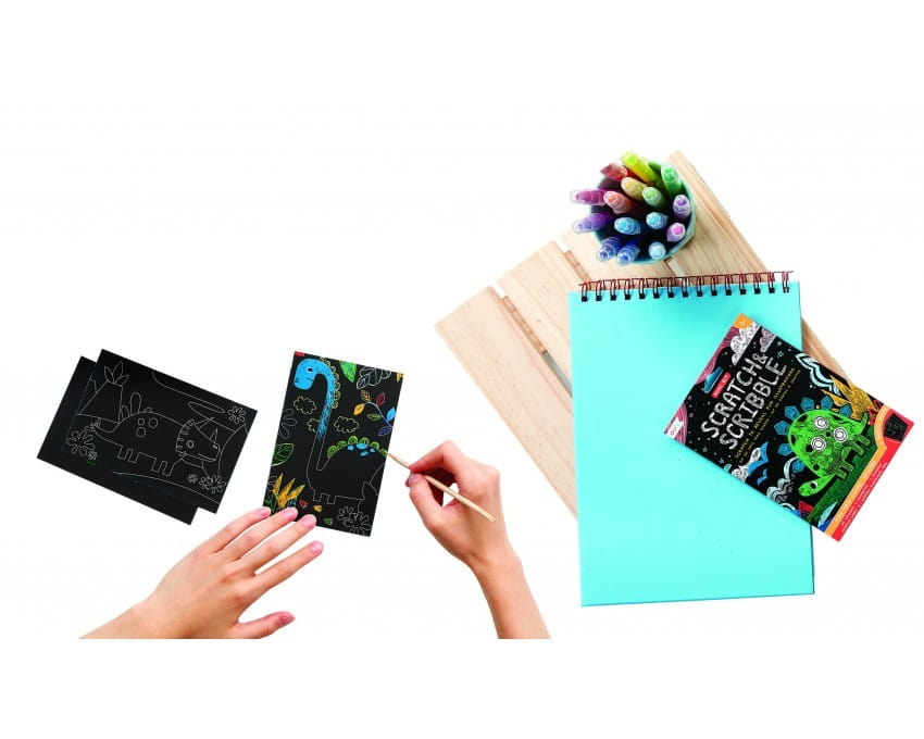Uwielbiona przez dzieci zdrapywanka z dinozaurami Ooly. Kreatywny zestaw zawiera czarne kartki pokryte specjalną warstwą z narysowanymi konturami oraz rysik do drapania. Kolorowe zdrapywanki gwarantują udaną zabawę.