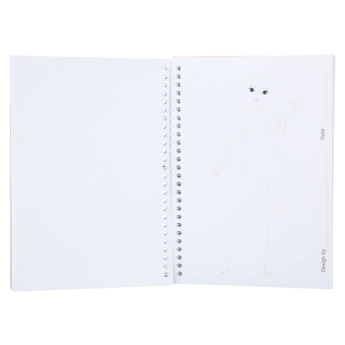 Kieszonkowy notes szkicownik TopModel Pocket będzie wykorzystany do wielu zabaw, projektów, zapewni ciekawie spędzony czas wolny. Notes wielkości A6 można mieć zawsze pod ręką i przy sobie, gdy do głowy wpadnie nowy pomysł na stylizację. Szkicownik zawiera arkusz z naklejkami oraz obrysy sylwetek, do których domalowujemy ubrania, buty, biżuterię, a nawet kolor i długość włosów. Notes posiada usztywnioną okładkę z brokatowymi, wypukłymi elementami. Na każdej stronie jest misce na wpisanie daty oraz podpisu projektanta.