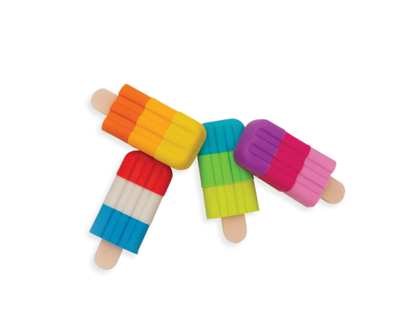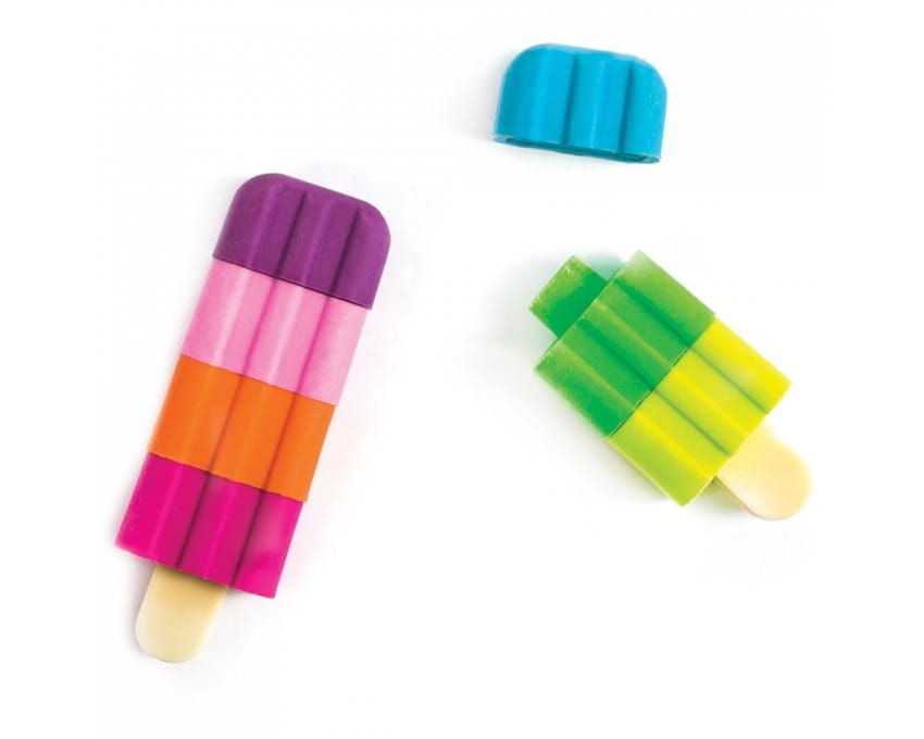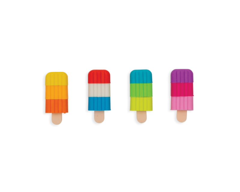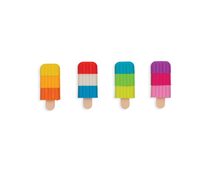 Kolorowe gumki do ścierania Ooly Lody na patyku wymazują błędy i zapełniają miłą zabawę. Warstwy lodów można przekładać i dowolnie mieszać kolorami między gumkami. Zestaw składa się z 4 pachnących wanilią gumek w kształcie lodów. Słodkie gumki bardzo dobrze wymazują ślady po ołówku.
