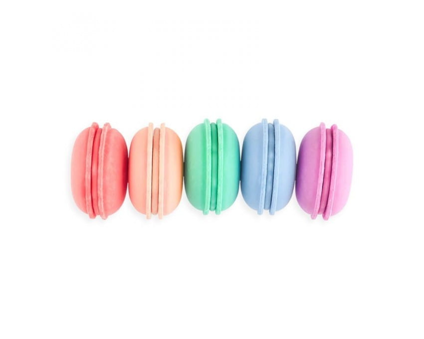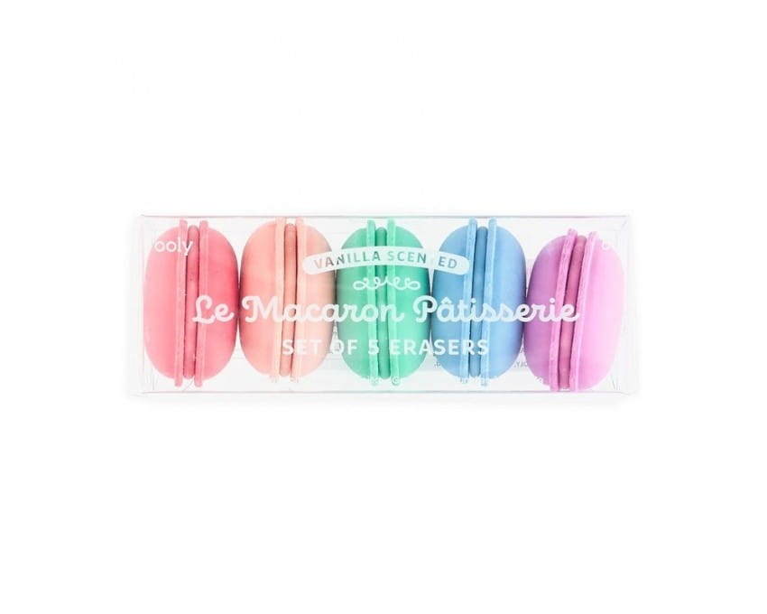 Kolorowe gumki do ścierania Ooly Makaroniki wymazują błędy i zapełniają miłą zabawę. Gumki makaroniki można rozłożyć na części i bawić się i dowolnie miksować kolorami. Zestaw składa się z 5 pachnących wanilią gumek w kształcie kolorowych makaroników. Słodkie gumki bardzo dobrze wymazują ślady po ołówku.
