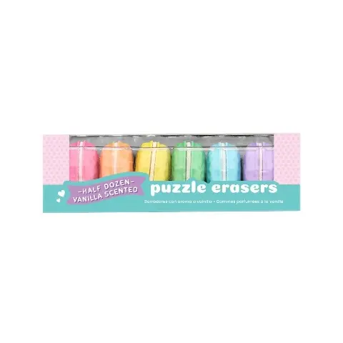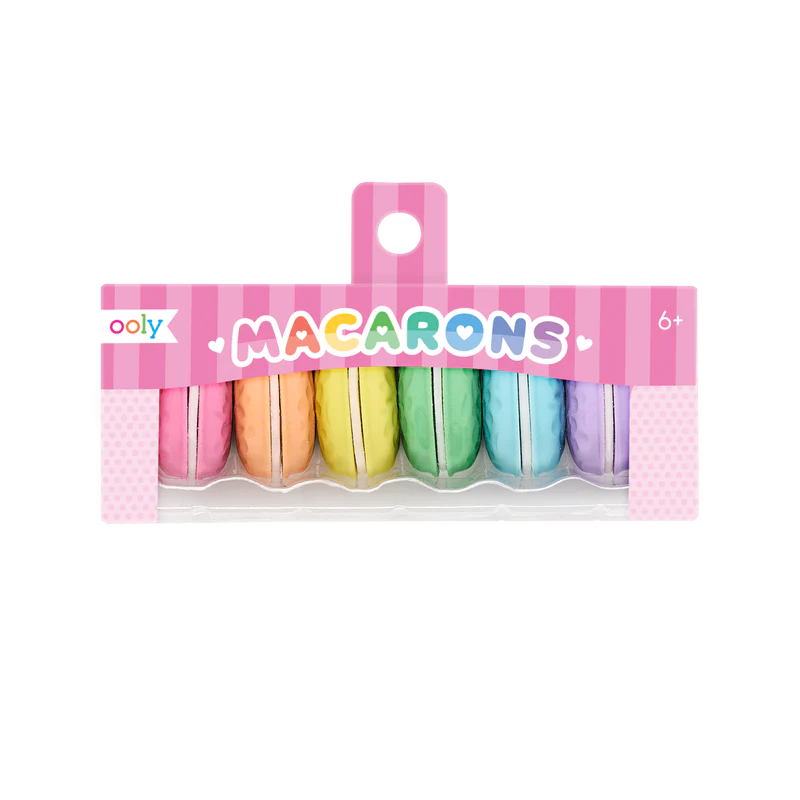 Kolorowe gumki do ścierania Ooly Makaroniki wymazują błędy i zapełniają miłą zabawę. Gumki makaroniki można rozłożyć na części i bawić się i dowolnie miksować kolorami. Zestaw składa się z 6 pachnących wanilią gumek w kształcie kolorowych makaroników. Słodkie gumki bardzo dobrze wymazują ślady po ołówku.