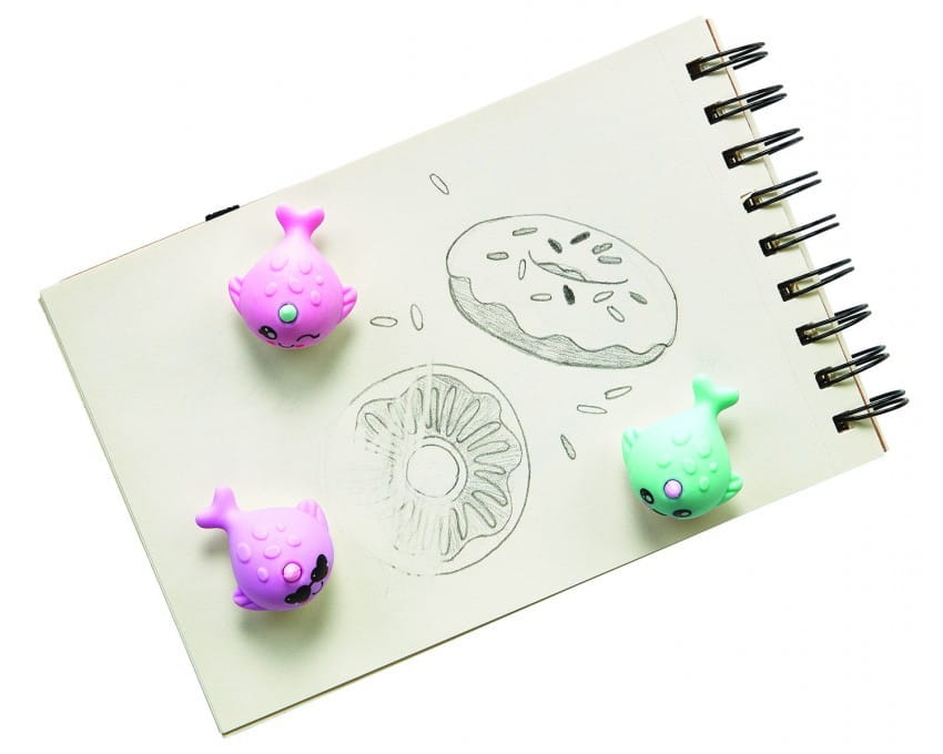 Kolorowe gumki do ścierania Ooly Narwale wymazują błędy i zapełniają miłą zabawę. Rogi narwali można przekładać i dowolnie mieszać kolorami między gumkami. Zestaw składa się z 3 pachnących wanilią gumek w kształcie narwali. Słodkie gumki bardzo dobrze wymazują ślady po ołówku.