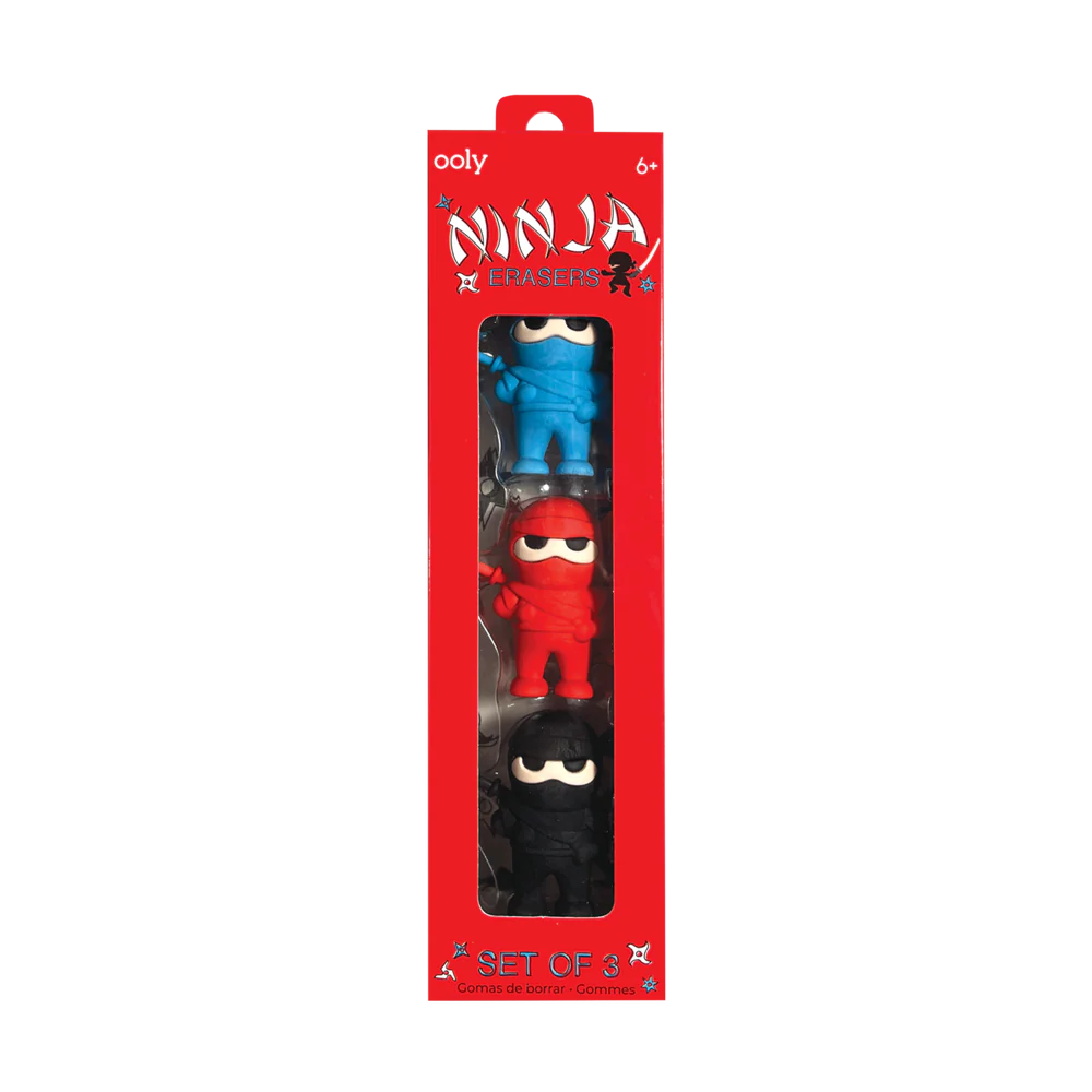 Kolorowe gumki do ścierania Ooly Ninja wymazują błędy i zapełniają miłą zabawę. Zestaw składa się z 3 pachnących wanilią gumek w kształcie wojowników. Słodkie gumki bardzo dobrze wymazują ślady po ołówku.