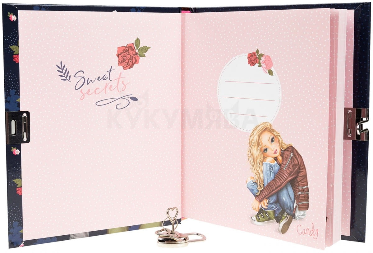 Pamiętnik Top Model zamykany na kłódkę w kształcie serca, w komplecie z dwoma kluczykami. Notes Top Model liczy aż 192 różowe strony, gdzie dziewczynka może zapisywać swoje sekreciki oraz wykonywać szkice i rysunki.