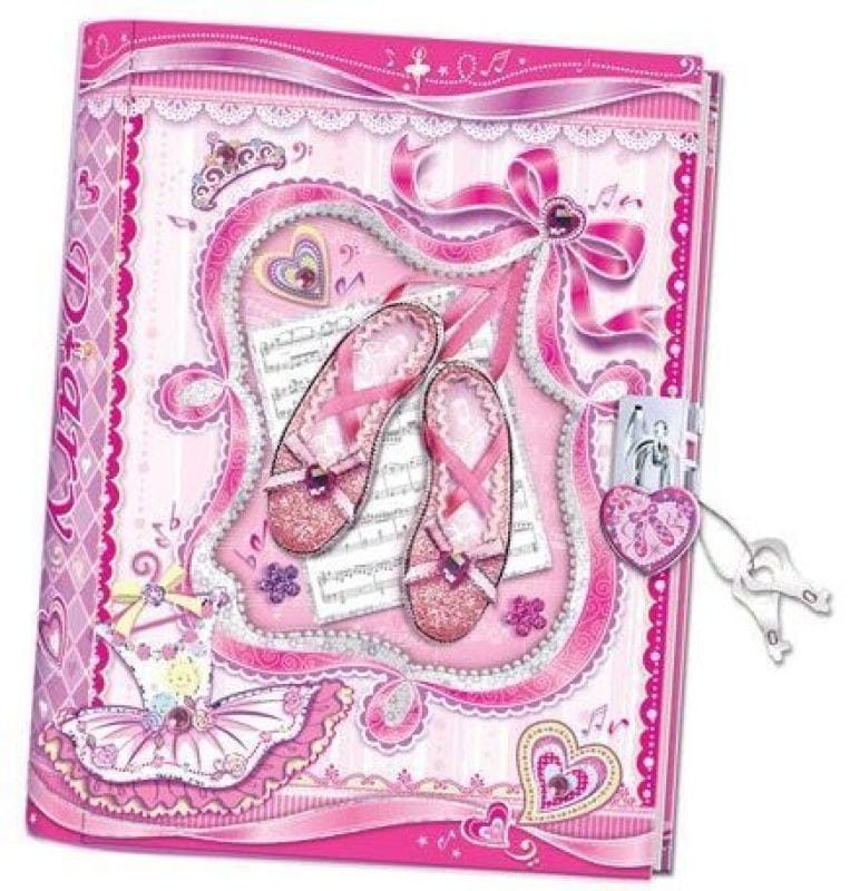 Różowy pamiętnik oprawiony w twardą okładkę z wizerunkiem baletek.