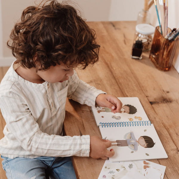 Zeszyt z naklejkami ubieranka Jim & Friends z kolekcji Forest Friends od Little Dutch – idealny sposób na rozwijanie kreatywności i wyobraźni Twojego dziecka.
