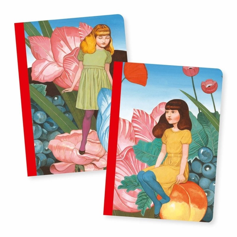 Kieszonkowe notesiki Djeco w subtelnej szacie graficznej. Zestaw liczy 2 notesiki: jeden w linie, drugi gładki.