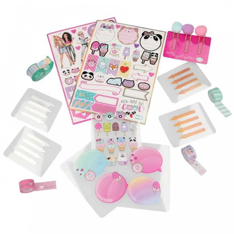 Bullet Journal to zestaw Top Model, który zawiera kalendarz oraz akcesoria do ozdabiania stron. Planner czasu ma strony w kropki, umożliwia dowolne wykonanie wielu rysunków, zapisków, notatek, list zadań, a następnie ich udekorowanie załączonymi przyborami: kolorowymi tasiemkami, błyszczącymi naklejkami o różnych kształtach i motywach. W zestawie otrzymamy także ciekaw zakładki z pomponami.