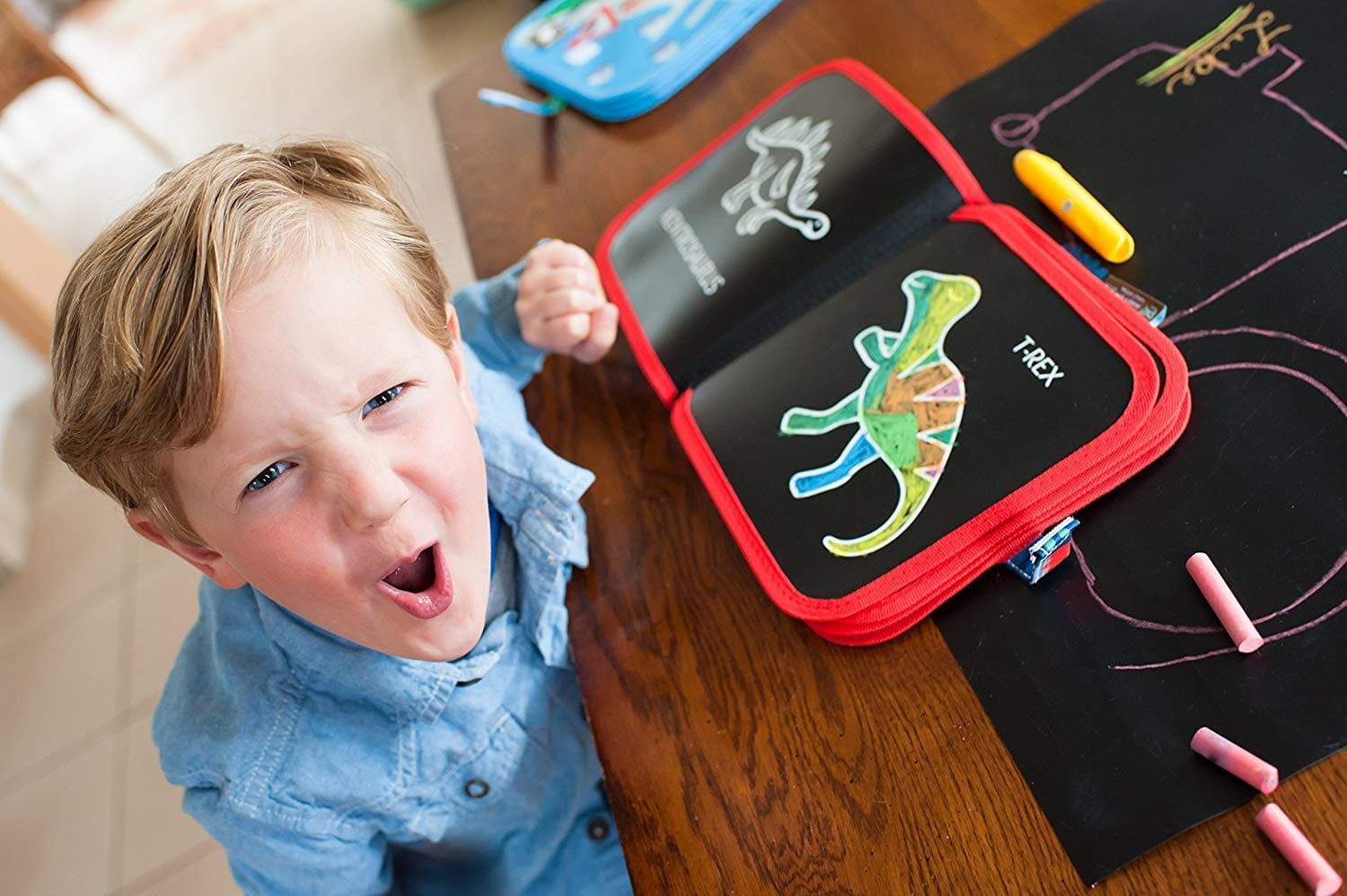Kredowa książeczka Jaq Jaq Bird do wielokrotnego rysowania i zmazywania posiada zarówno gładkie strony, jak i z konturami do pokolorowania. Kolorowanka Color It Book jest w zestawie z niepylącą kredą. Książeczka z czarnymi stronami, po których można bez końca malować kredą, czy zmywalnymi pisakami to pomysł na kreatywnie spędzony czas. 8 czarnych stron zapinanych na rzep oraz etui na kredę sprawia, że kolorowankę można zabrać wszędzie ze sobą. Kreatywna książeczka dobrze sprawdzi się w podróży i na wakacjach, we restauracji i każdej poczekalni, aby rozwiać nudę.