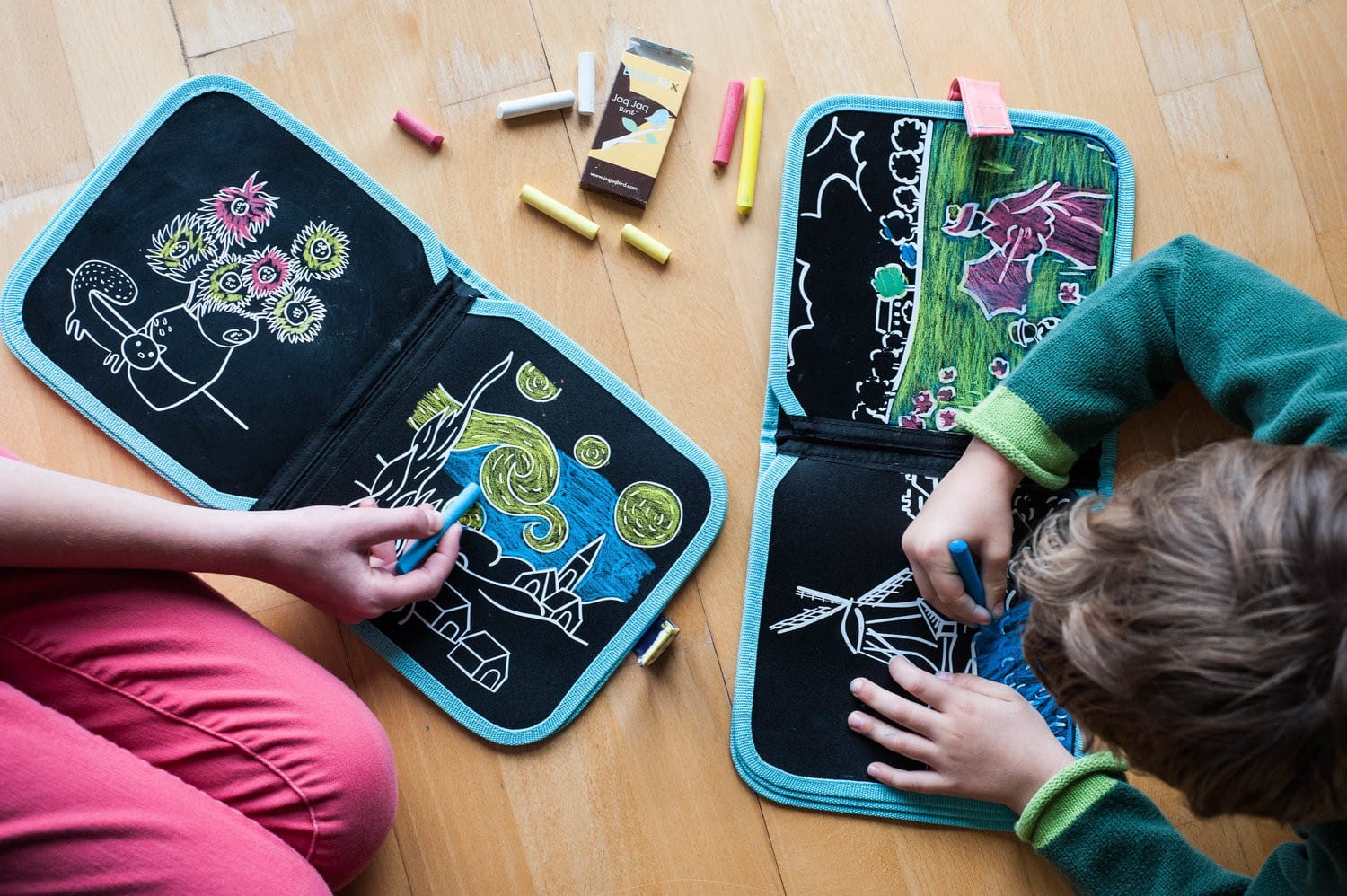 Kredowa książeczka Jaq Jaq Bird do wielokrotnego rysowania i zmazywania posiada zarówno gładkie strony, jak i z konturami do pokolorowania. Kolorowanka Color It Book jest w zestawie z niepylącą kredą. Książeczka z czarnymi stronami, po których można bez końca malować kredą, czy zmywalnymi pisakami to pomysł na kreatywnie spędzony czas. 8 czarnych stron zapinanych na rzep oraz etui na kredę sprawia, że kolorowankę można zabrać wszędzie ze sobą. Kreatywna książeczka dobrze sprawdzi się w podróży i na wakacjach, we restauracji i każdej poczekalni, aby rozwiać nudę.