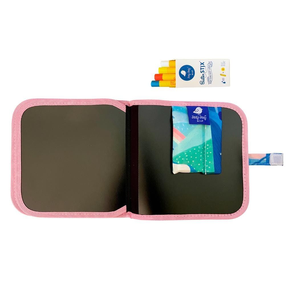 Kredowa książeczka Jaq Jaq Bird do wielokrotnego rysowania i zmazywania. Kolorowanka jest w zestawie z niepylącą kredą. Książeczka z czarnymi stronami, po których można bez końca malować kredą, czy zmywalnymi pisakami to pomysł na kreatywnie spędzony czas. 8 czarnych stron zapinanych na rzep oraz etui na kredę sprawia, że kolorowankę można zabrać wszędzie ze sobą. Kreatywna książeczka dobrze sprawdzi się w podróży i na wakacjach, we restauracji i każdej poczekalni, aby rozwiać nudę.
