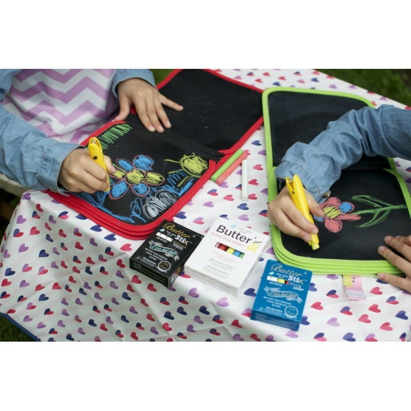 - W zestawie: książeczka do rysowania, 4 bezpyłowe kredy ButterStix