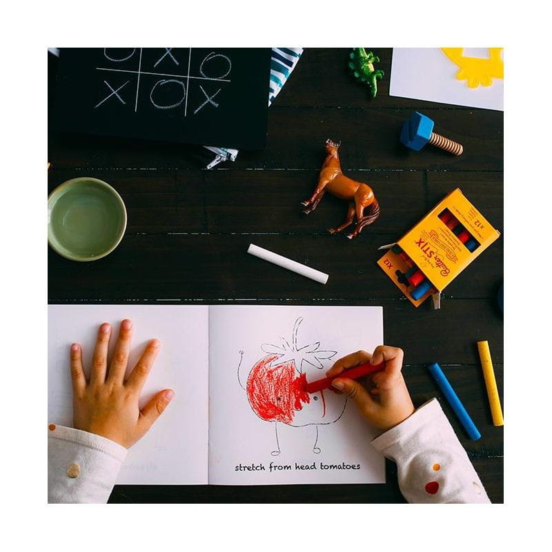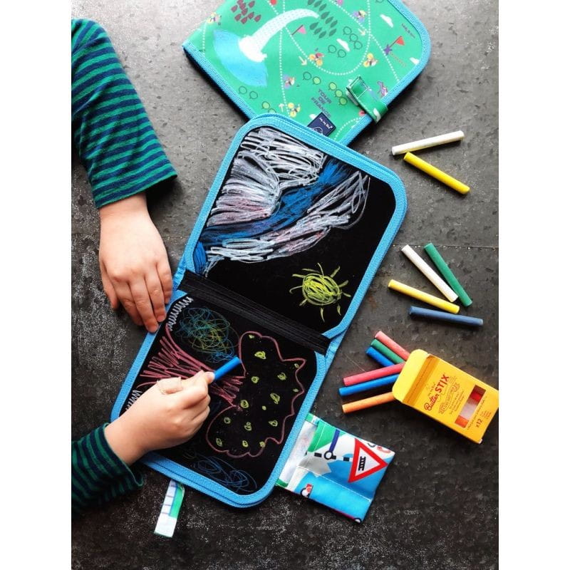 Kreda niczym kredki pastelowe umożliwia malowanie płynnie i gładko, zwłaszcza na neoprenowych powierzaniach książeczek kredowych Jaq Jaq Bird.