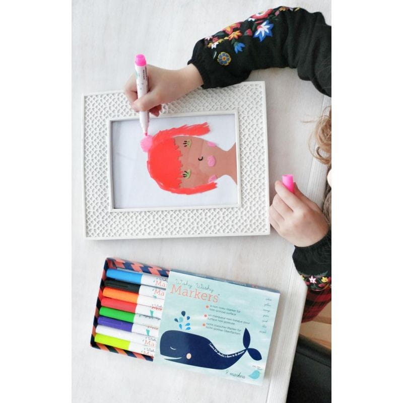 Zmazywalne flamastry Jaq Jaq Bird do pisania i kolorowania po różnych powierzchniach. Pisaki zapewniają mnóstwo kreatywnej zabawy, gdyż dobrze piszą na takich powierzchniach jak: szkło (okna, lustra, ramki do zdjęć), tekturze, papierze, tablicy. Markery zmazywalne Jaq Jaq Bird do wielokrotnego malowania i poprawiania, gdy np. wyjedziemy poza linię neoprenowej kolorowanki.