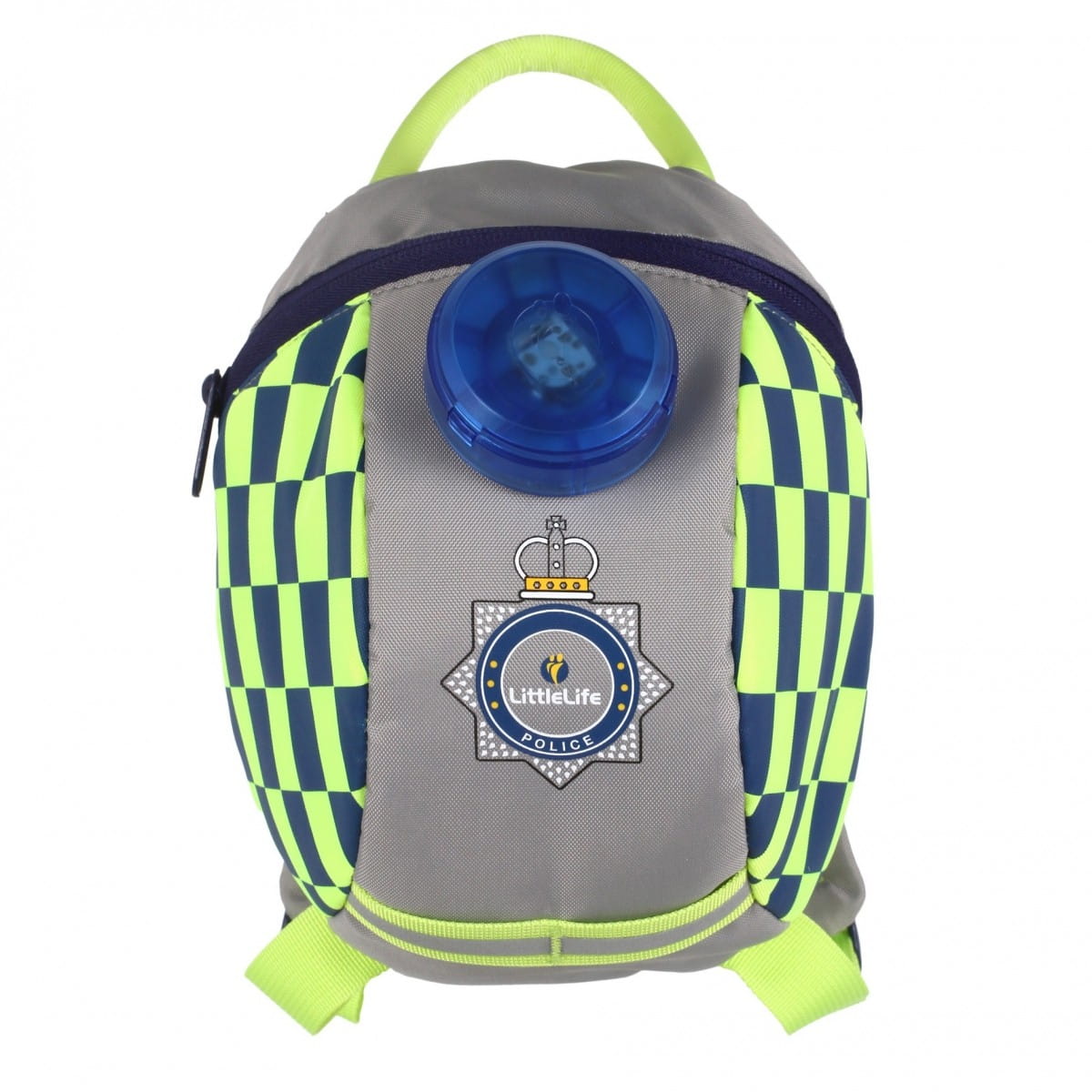 Plecak dziecięcy Wóz Policyjny LittleLife z migającym światełkiem (uruchamianym po dotknięciu niebieskiego światełka) i paskiem piersiowym, by nie spadać z ramion. Wymarzony plecak dla maluszków i przedszkolaków. Plecaczek dziecięcy idealny dla małych podróżników i fanów policji, którzy już samodzielnie chodzą, lubią biegać, pakować i przenosić swoje skarby, lecz czasem wymykają się spod kontroli... Plecak Radiowóz ma doczepianą linkę – smycz bezpieczeństwa , która umożliwia przytrzymanie dziecka np. gdy zbliżamy się do przejścia dla pieszych lub na chłodniku z naprzeciwka jedzie rowerzysta. Innowacyjny plecaczek jest bezpieczny, mały, lekki, kształtem odpowiedni do pleców małego dziecka, szelki są regulowane i mają klips, by nie zsuwały się z ramion. Pomieści wszystko co niezbędne podczas wycieczki. Wewnątrz miejsce na podpisanie plecaczka.