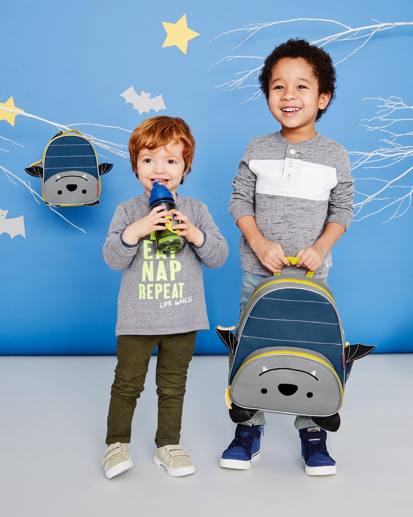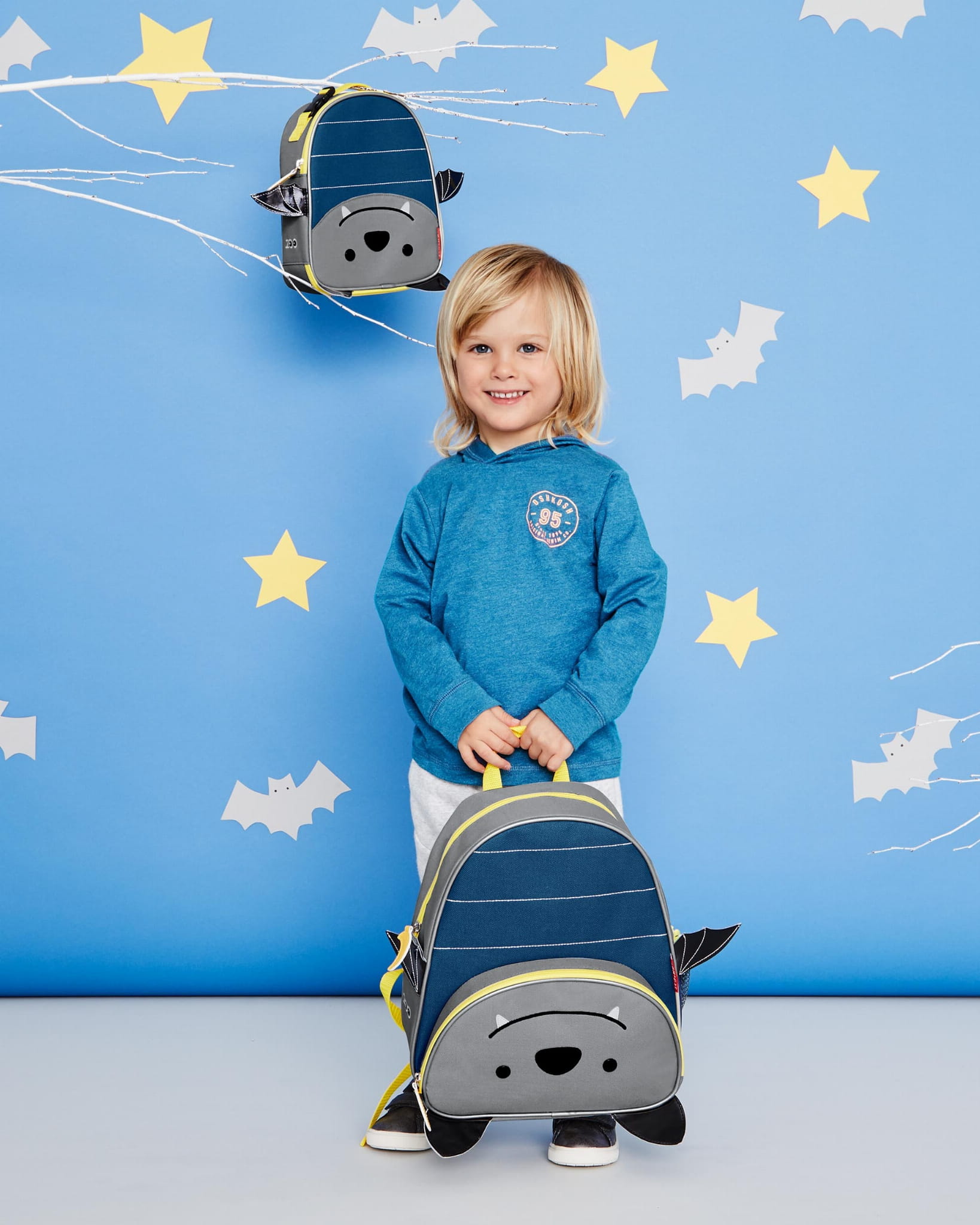 Plecak Skip Hop Zoo Nietoperz to rewelacyjny plecaczek dla przedszkolaka, ucznia i małego podróżnika. Jest kolorowy, lekki, wygodny, wytrzymały i przeuroczy. Pomieści ulubione zabawki i książeczki, bidon lub butelkę z wodą, śniadaniówkę oraz wszystkie ważne skarby dziecka. Znakomity plecak dziecięcy na wycieczkę, podróż, weekend u dziadków.