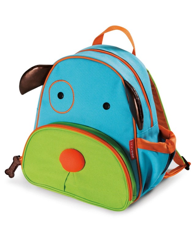 Plecak Skip Hop Zoo Pies to rewelacyjny plecaczek dla przedszkolaka, ucznia i małego podróżnika. Jest kolorowy, lekki, wygodny, wytrzymały i przeuroczy. Pomieści ulubione zabawki i książeczki, bidon lub butelkę z wodą, śniadaniówkę oraz wszystkie ważne skarby dziecka. Znakomity plecak dziecięcy na wycieczkę, podróż, weekend u dziadków.