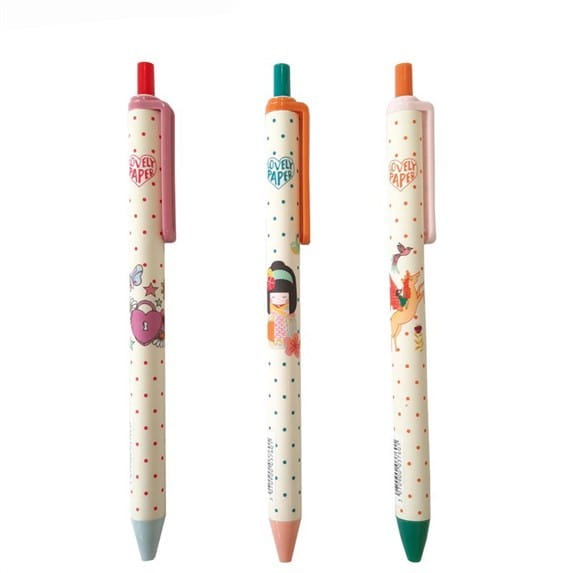 Długopisy mają wysuwaną stalówkę z mechanizmem zatrzaskowym i plastikowy klips, który umożliwi zaczepienie do zeszytu, czy pamiętnika.