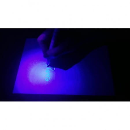 Pisany tekst jest niewidoczny gołym okiem i staje się widzialny dopiero po podświetleniu zintegrowanym światłem UV.
