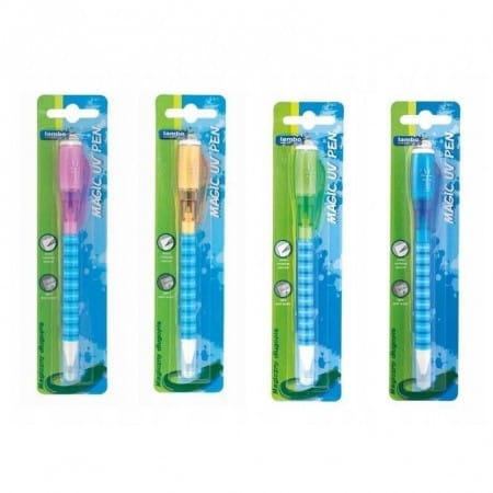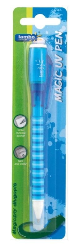Długopis z latarką Magic UV Pen jest widoczny nawet w ciemności. Fluorescencyjny długopis pozwoli sporządzić w pamiętniku tajne zapasiki i obrazki. Sekreciki będą widoczne tylko po podświetleniu specjalną latarką, która znajduje się na końcu długopisu. Długopis posiada 2 końcówki, zwykłą oraz z niewidzialnym tuszem, który ujawnia się po podświetleniu światełkiem latarki.
