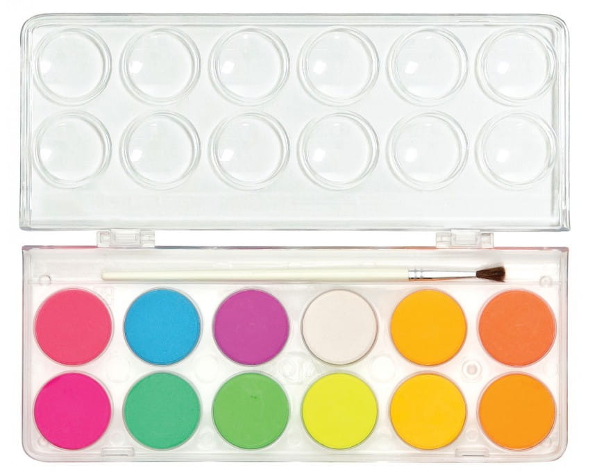 - W zestawie: paletka z 12 barwami, pędzelek