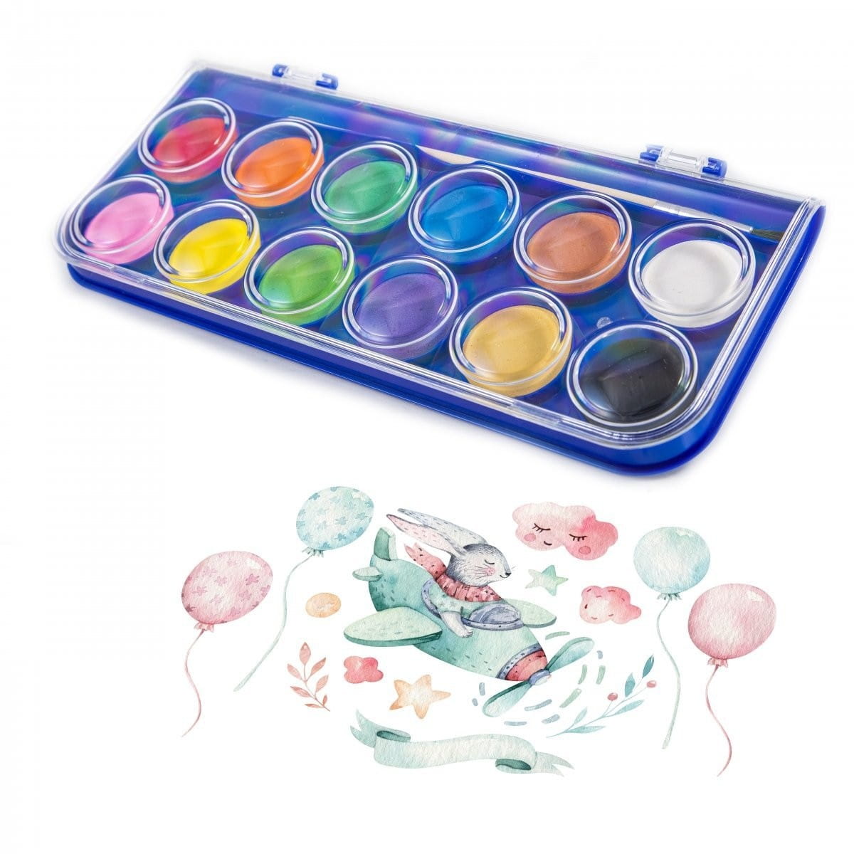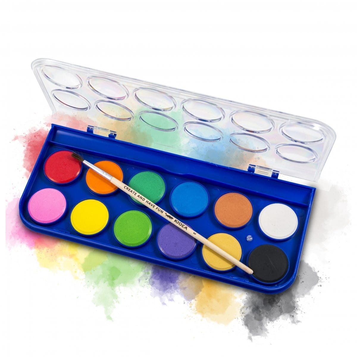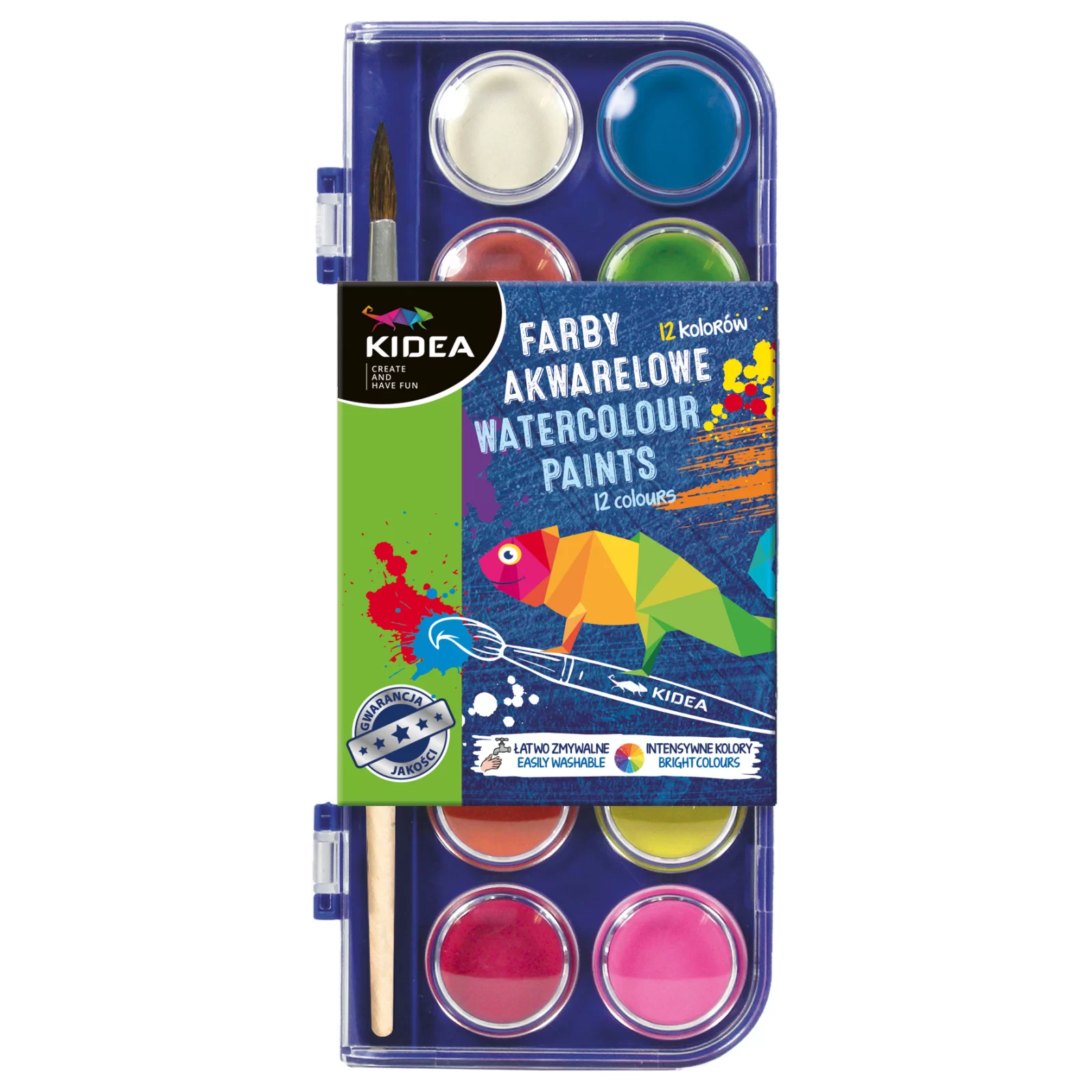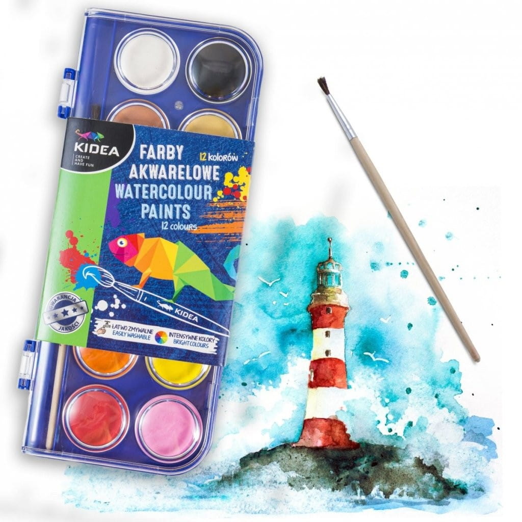 Farby akwarelowe z pędzelkiem 12 kolorów Kidea