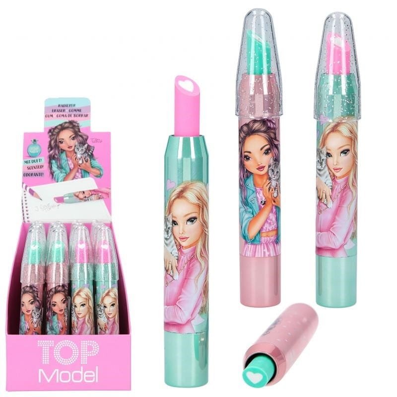 Gumka do ścierania TOP Model w kształcie błyszczyku. Gumka do mazania w kształcie szminki prezentuje się bardzo efektownie. Gumka jest wysuwana, wystarczy przekręcić końcówkę - zupełnie jak lipstick. Ta gumka jest także wygodna w użyciu i trzymaniu, stanowi idealne dopełnienie szkicownika Top Model.