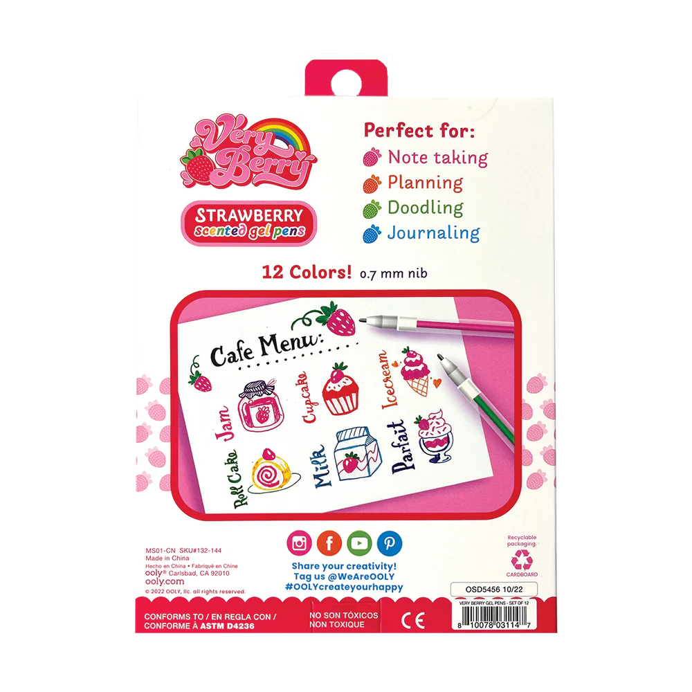 Zestaw "Very Berry Strawberry Scented Gel Pens - Set of 12" to wyjątkowy i praktyczny dodatek do każdej kolekcji przyborów do pisania, który z pewnością ucieszy zarówno młodszych, jak i starszych użytkowników. Świetnie sprawdzi się jako kreatywny prezent, który urozmaici każde biurko.