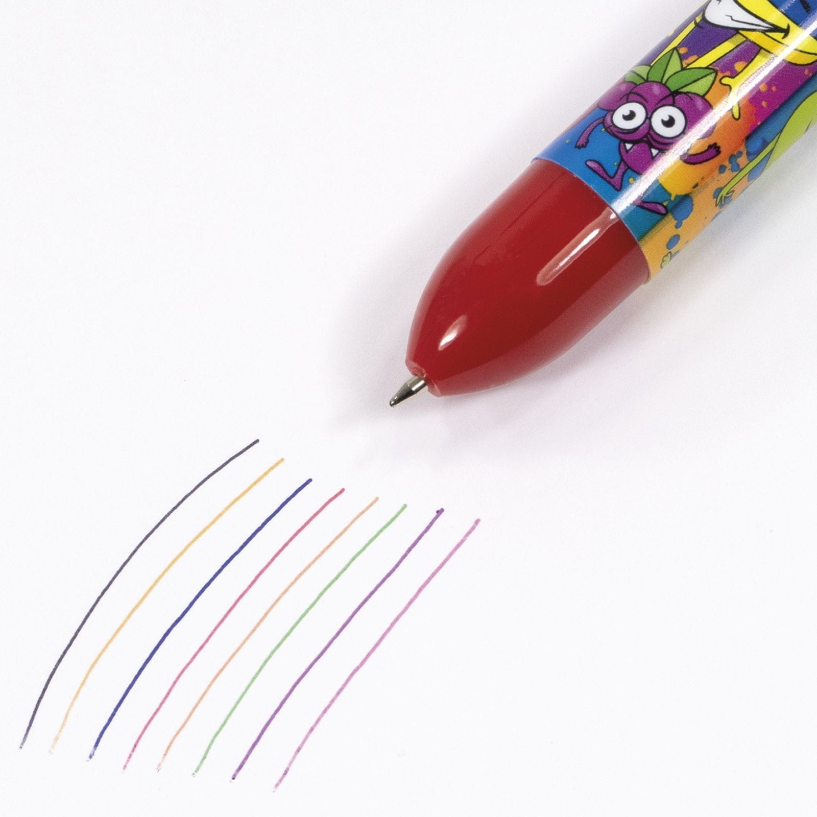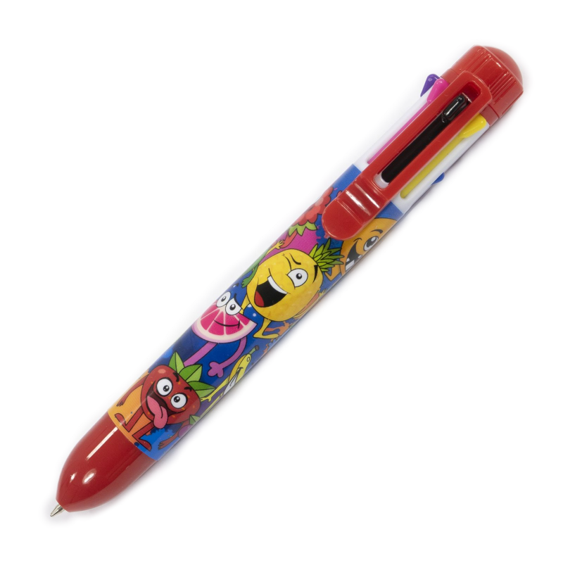 Długopis zapachowy 8w1 z wkładami w ośmiu kolorach: czarnym, niebieskim, zielonym, pomarańczowym, czerwonym i fioletowym. Jego dodatkowym atutem są delikatnie wyczuwalne, przyjemne zapachy każdego z kolorów, które uatrakcyjniają pisanie i sprawiają, że dzieci chętniej po niego sięgają. Precyzyjna końcówka ułatwia pisanie oraz dokładne wyróżnienie odpowiednich fragmentów tekstu. Funkcja 8 w 1 sprawia, że jest on przydany w piórniku każdego dziecka, a zajmuje tak niewiele miejsca.