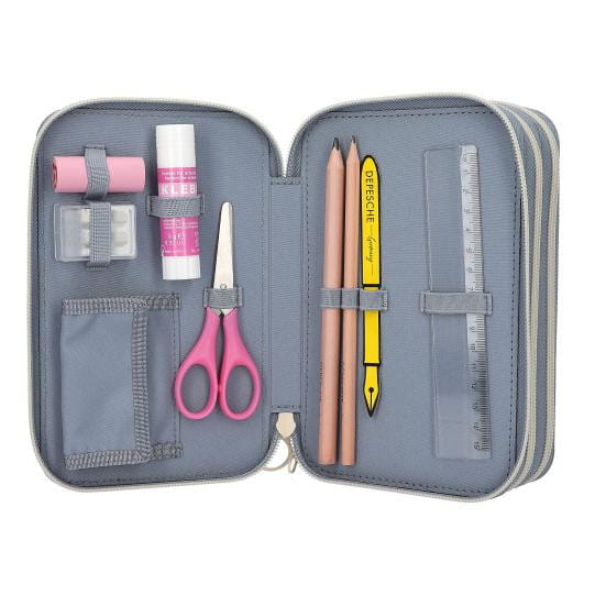 Piórnik został zaprojektowany tak, aby pomieścić wszystkie niezbędne akcesoria szkolne. Trzy oddzielne przegródki zapewniają wygodę i porządek, a pełne wyposażenie sprawia, że jest gotowy do użycia od razu po zakupie.