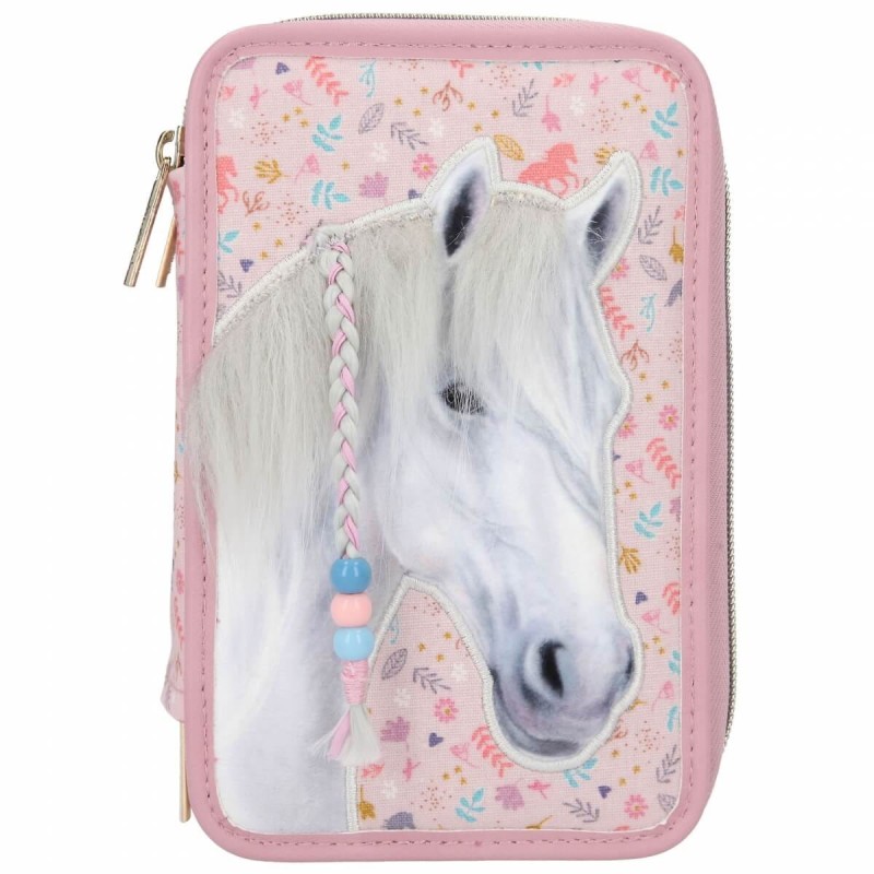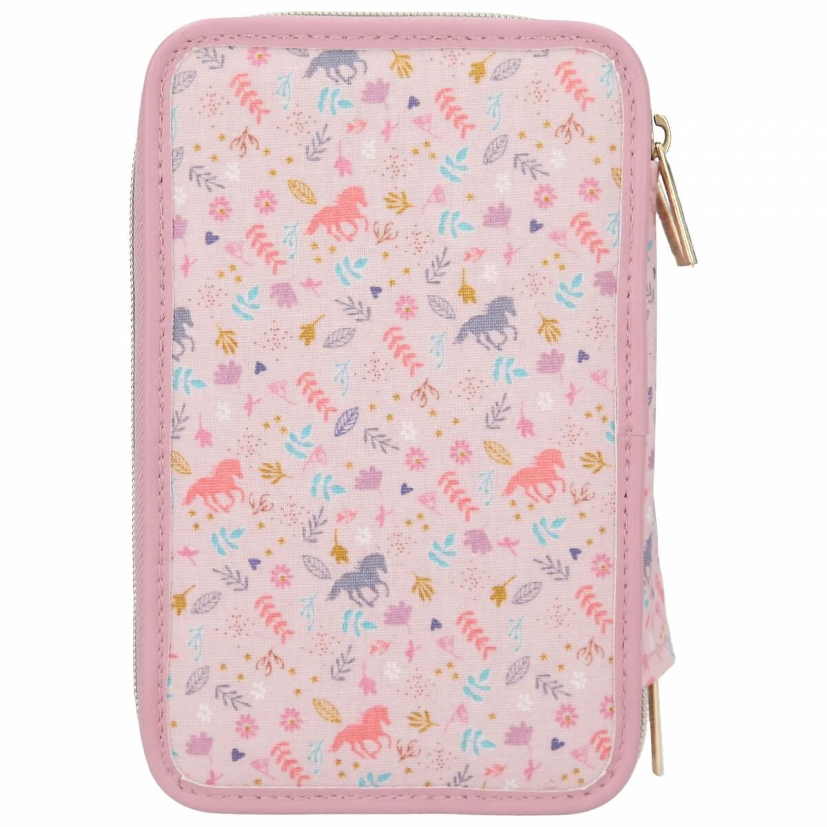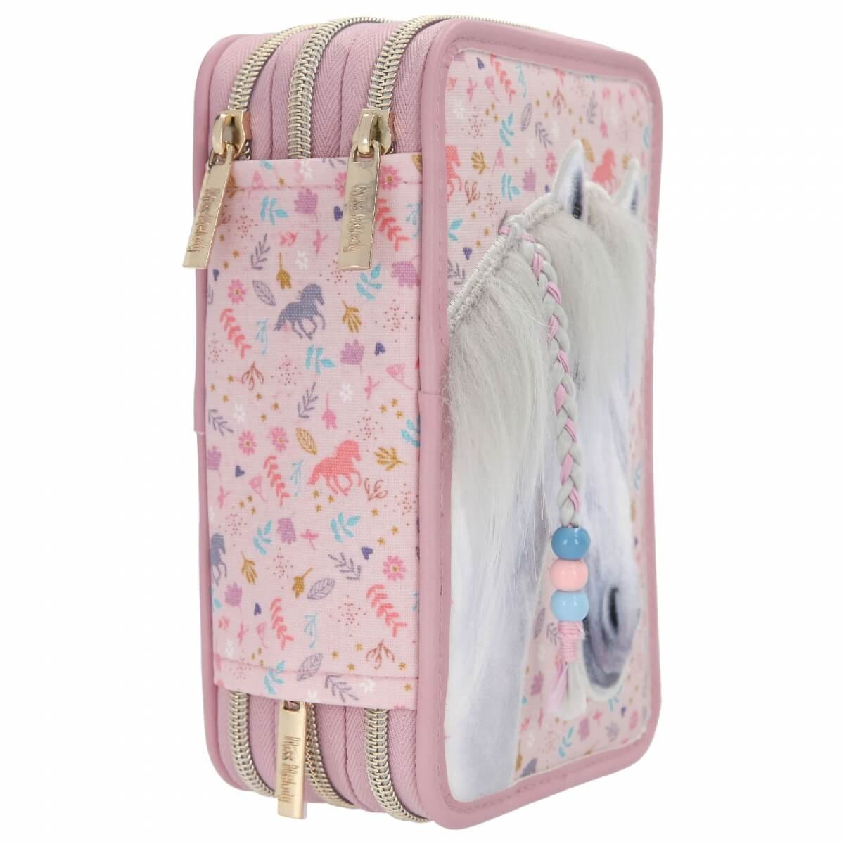 Piórnik Miss Melody z koniem jest bogato wyposażony we wszystko, co niezbędne w szkolnej wyprawce: