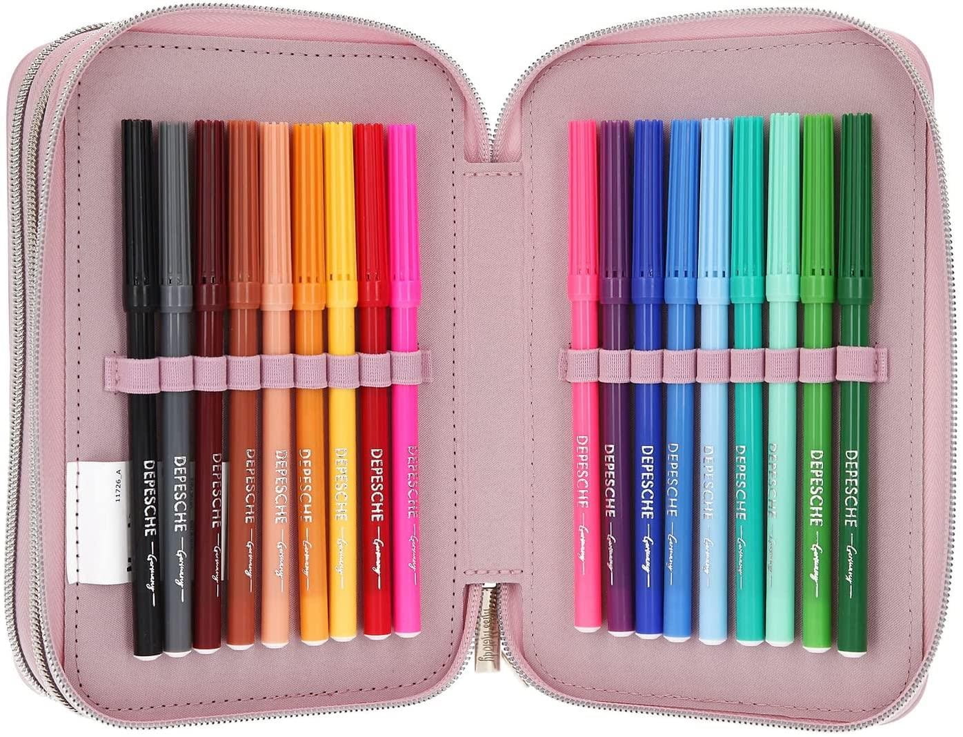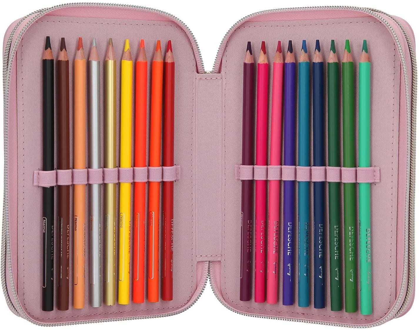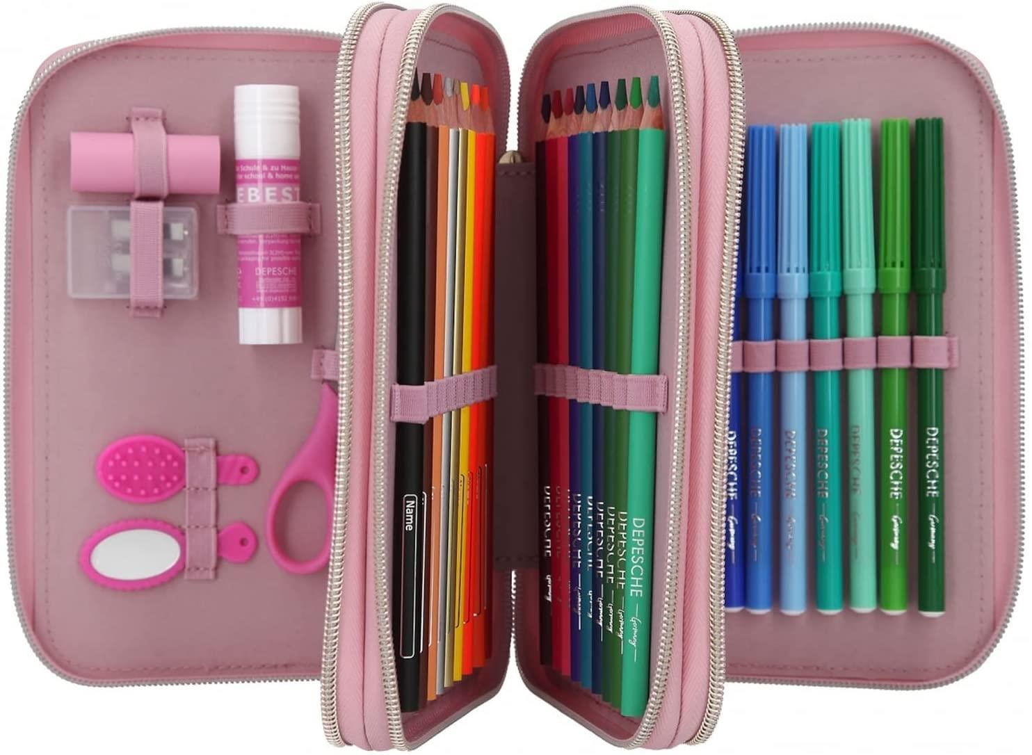 Piórnik Miss Melody z koniem jest bogato wyposażony we wszystko, co niezbędne w szkolnej wyprawce: