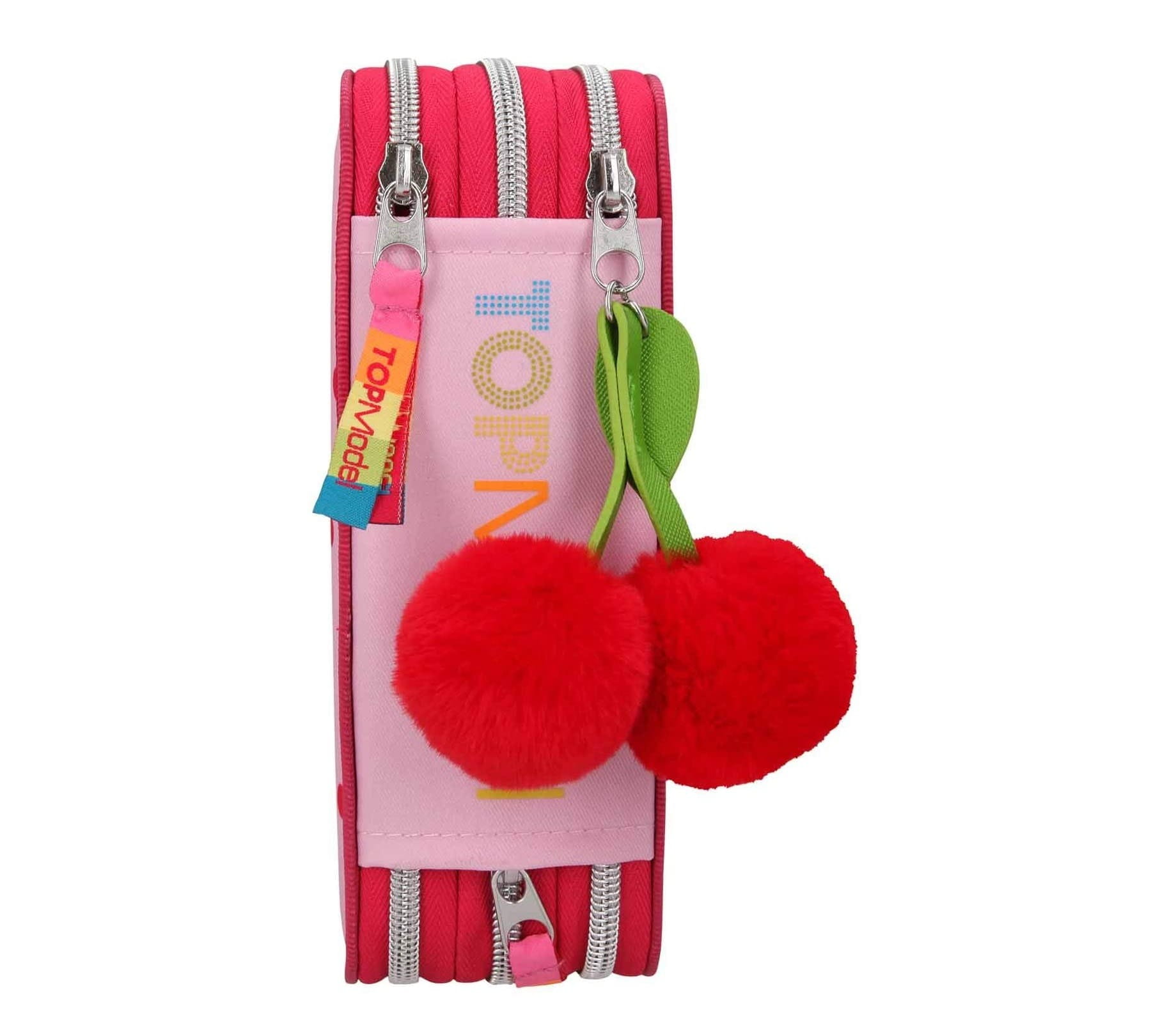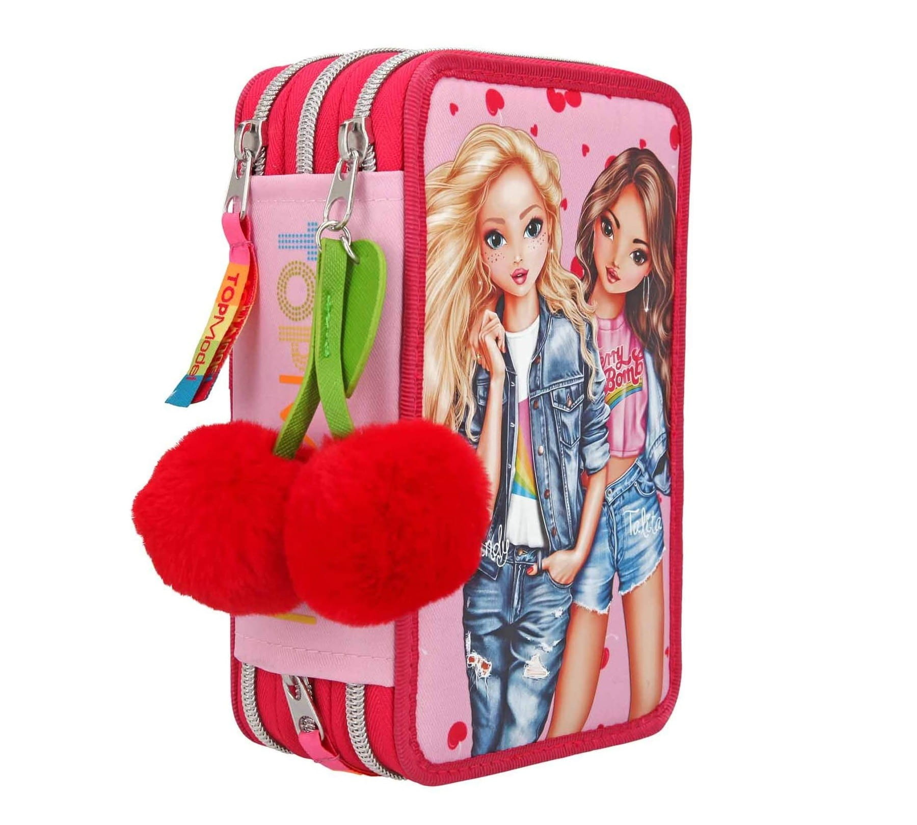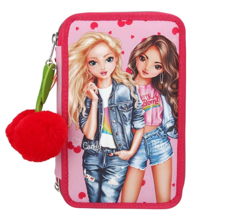 Czerwony piórnik z dziewczynami Top Model jest zapinany na zamek błyskawiczny, udekorowany pomponami w kształcie wisienki. Piórnik szkolny ma liczne przegródki, dzięki czemu pomieści wszystkie przybory piśmiennicze oraz ułatwi przechowywanie ich w należytym porządku.