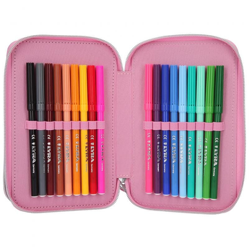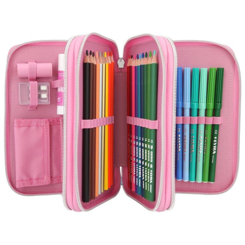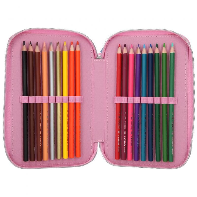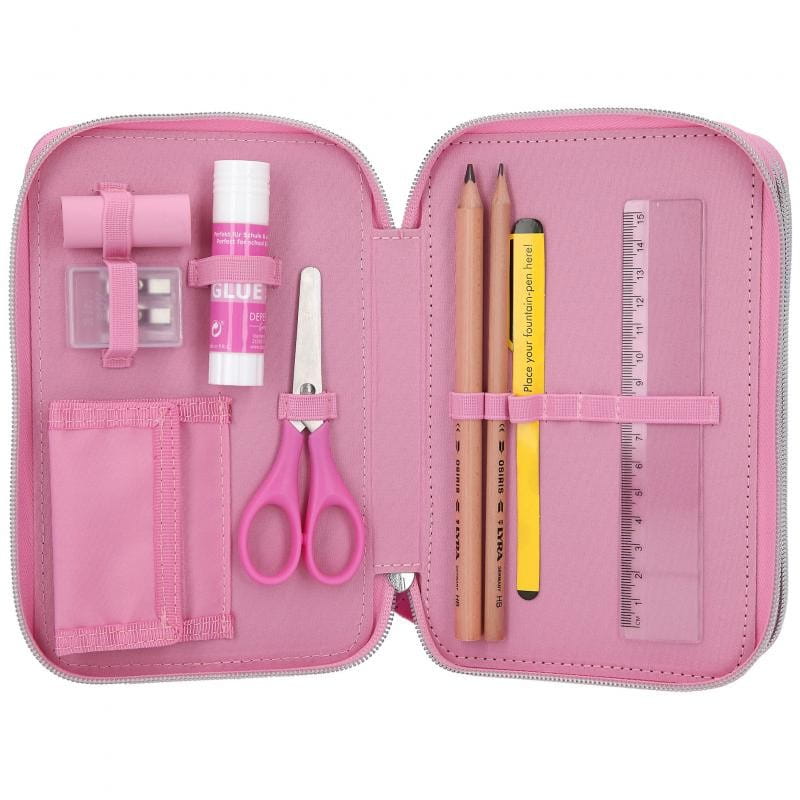 Kompletnie wyposażony piórnik szkolny ma liczne przegródki, dzięki czemu pomieści wszystkie przybory piśmiennicze oraz ułatwi przechowywanie ich w należytym porządku.