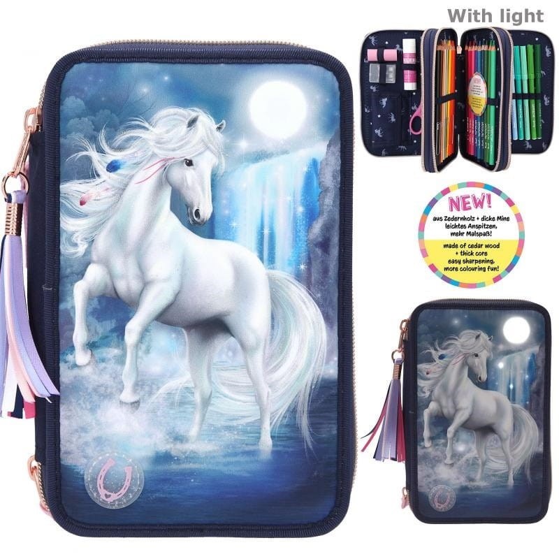 Potrójny Piórnik z Koniem Podświetlany Led - Miss Melody