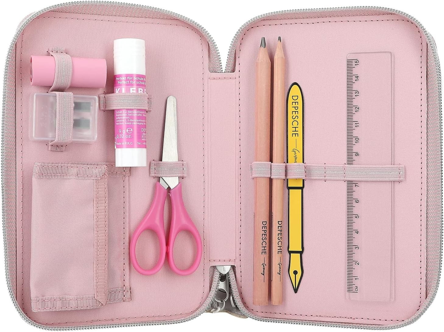 Piórnik TOP Model jest bogato wyposażony we wszystko, co niezbędne w szkolnej wyprawce: