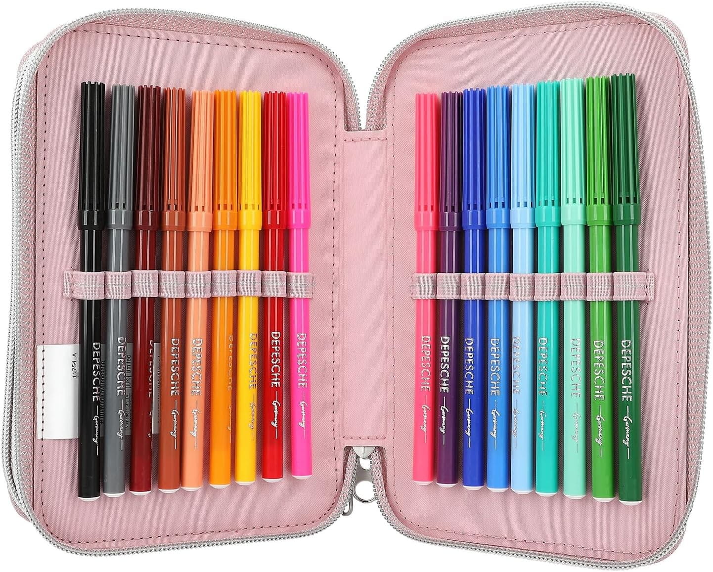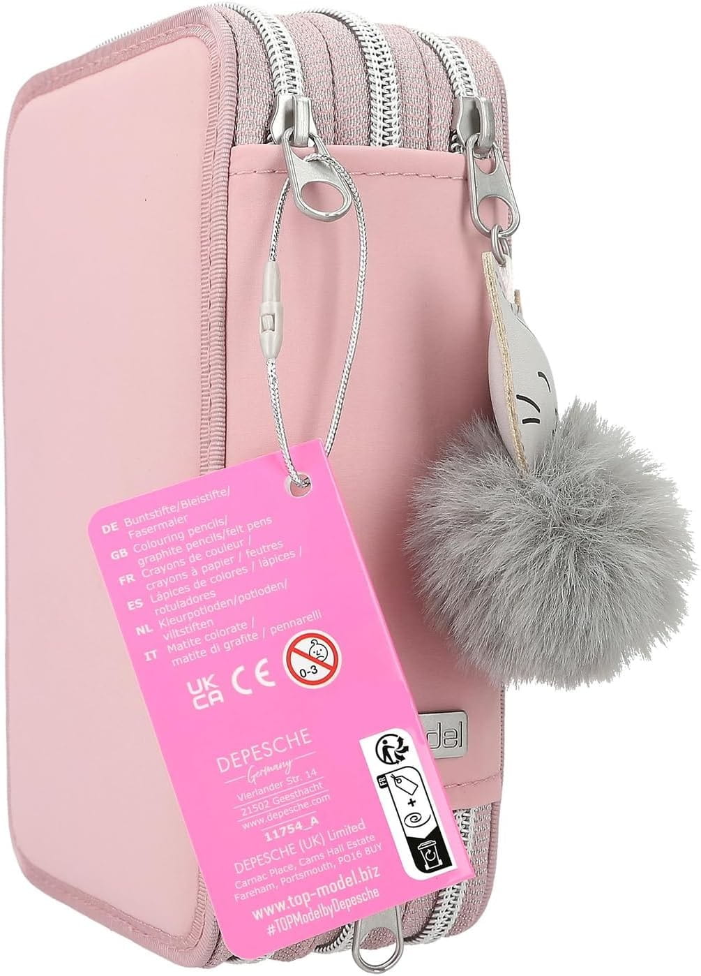 Potrójny piórnik z miłym kotkiem jest zapinany na zamek błyskawiczny. Trzy oddzielne przegródki zapinane na zamek są całkowicie wypełnione przyborami szkolnymi. Piórnik szkolny ma liczne przegródki, dzięki czemu pomieści wszystkie przybory piśmiennicze oraz ułatwi przechowywanie ich w należytym porządku. Dołączona urocza zawieszka w kształcie popcornu.