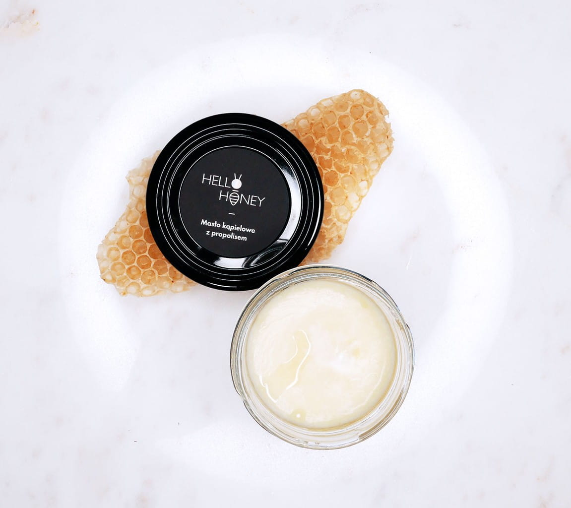 Masło do kąpieli z propolisem dodaje się do kąpieli w wannie. Masło znakomicie pielęgnuje suchą skórę, która swędzi, lub co chwile wyskakują jakieś dziwne suche krostki i rany dziwnie długo się goją. Propolis (występuje tutaj w stężeniu 4%) to naturalny antybiotyk, który wspiera mechanizmy obronne organizmu. Działa antybakteryjnie, przeciwwirusowo i przeciwgrzybiczo.