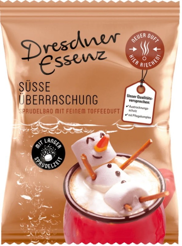 Tabletka musująca do kąpieli Dresdner Essenz pełna świątecznych zapachów. Sól do kąpieli dla mamy i taty pachnie toffi, kakao, karmelowymi słodkościami. Zawarty kompleks pielęgnujący z olejem z awokado i alantoiną ochrania skórę przed wysuszeniem. Kąpiel w soli działa relaksująco, łagodzi napięcia, usuwa stres, pobudza zmysły, pozytywnie wpływa na nasz nastrój, otula ciepłem.